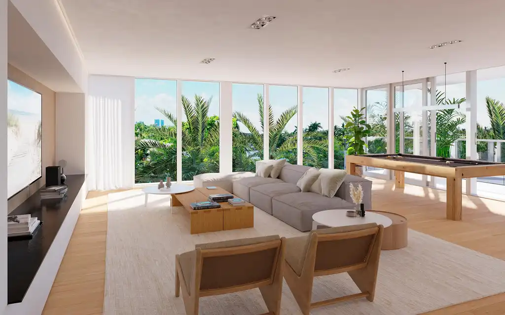Designed by the award-winning Frankel Benayoun Architects, 9900 West marries innovative design with luxurious finishes. The building stands as a testament to elegance, with its bright and airy lobby, double-height ceilings, and landscaped water features that welcome you home. Each residence has been thoughtfully designed to offer expansive floor plans, high ceilings, and floor-to-ceiling sliding glass doors that open up to breathtaking views of the Indian Creek waterway.