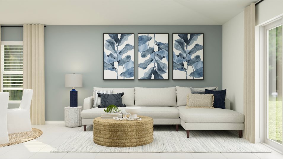 This new single-level home boasts a low-maintenance layout. Off the foyer, an open-concept floorplan combines the kitchen with the living and dining areas, and a convenient patio offers seamless indoor-outdoor transitions. Three bedrooms are tucked away to the side of the home, including the luxe owner’s suite in a private back corner.
