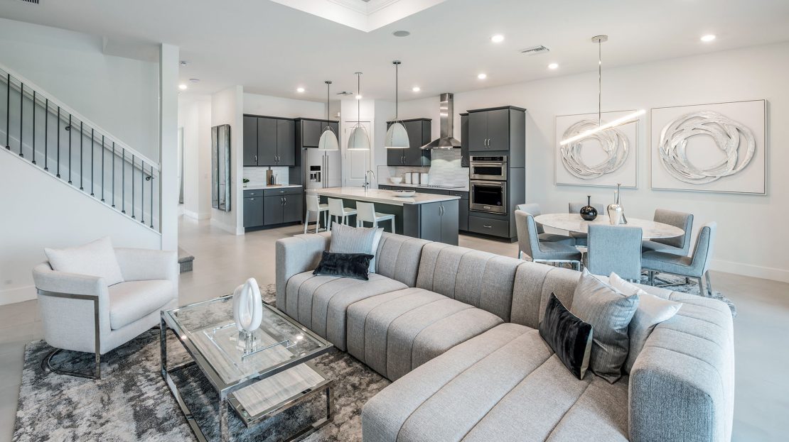 The Burbank is perfect for entertaining with connected living areas featuring a gourmet kitchen, open gathering room, and an optional extended covered lanai. If you would like to spread out, enjoy a flex room and a private Owner’s Suite on the first floor. Upstairs includes two additional bedrooms and a dynamic loft in this new construction home.