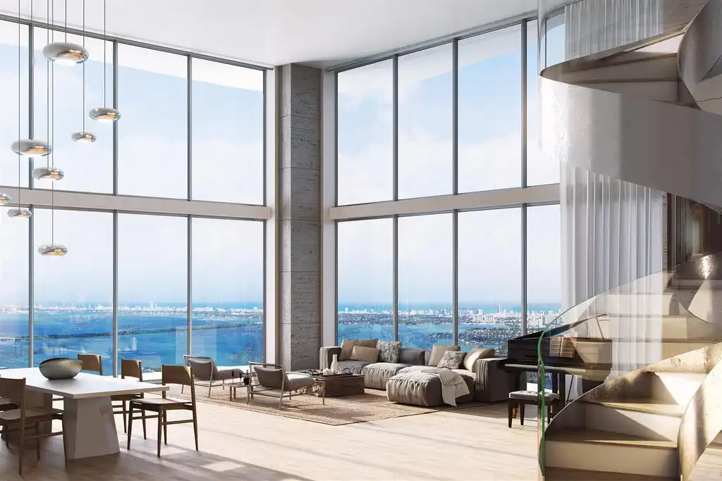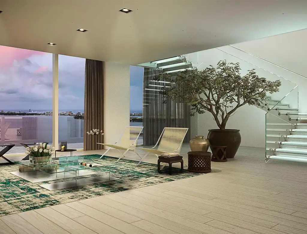 The Penthouse Collection includes 24 spacious penthouses with 11-foot ceilings and 4 Upper Penthouses with 12-foot ceilings. Two of the Upper Penthouses enjoy a private rooftop terrace, each designed with a summer kitchen and spa tub, set against incredible views of the ocean and Miami’s downtown skyline.
