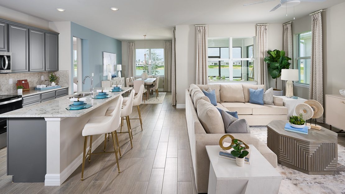 The Dove model at Crescent Lakes – Reserve Series features 4 bedrooms, 2 bathrooms, 1908 sqft, 2 car garage and is a 1 story home. This new construction home priced from 349995. Crescent Lakes – Reserve Series is a new pre-construction home community in Babcock Ranch Florida built by Meritage Homes.