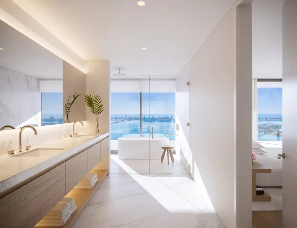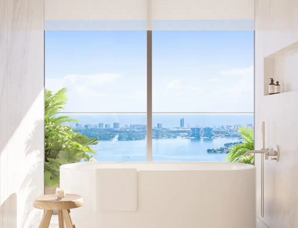 • Up to 12-foot deep terraces with panoramic views of Biscayne Bay, Downtown Miami, Miami Beach, and the Atlantic Ocean