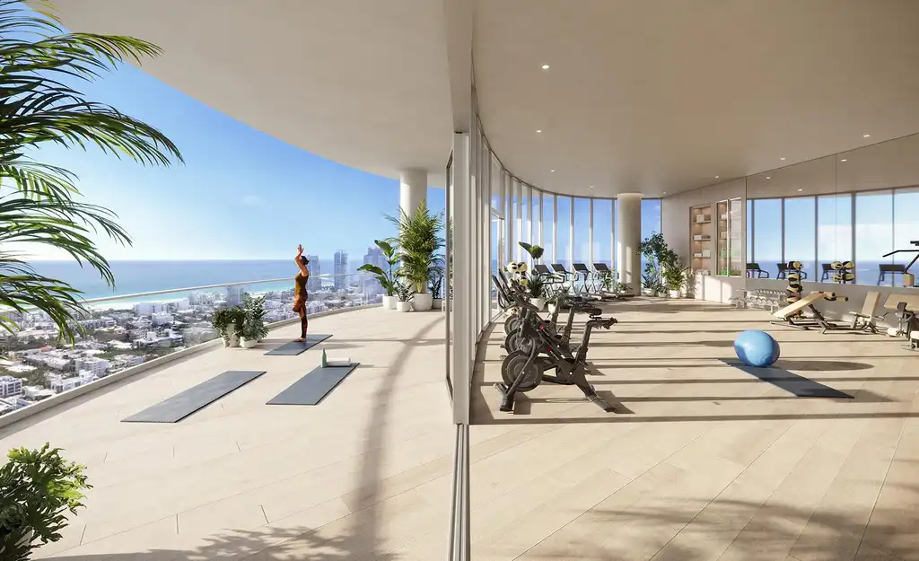 • A wellness lounge outfitted with private training areas, an outdoor workout zone, exercise bikes, yoga deck and juice bar amid spectacular bay and ocean views