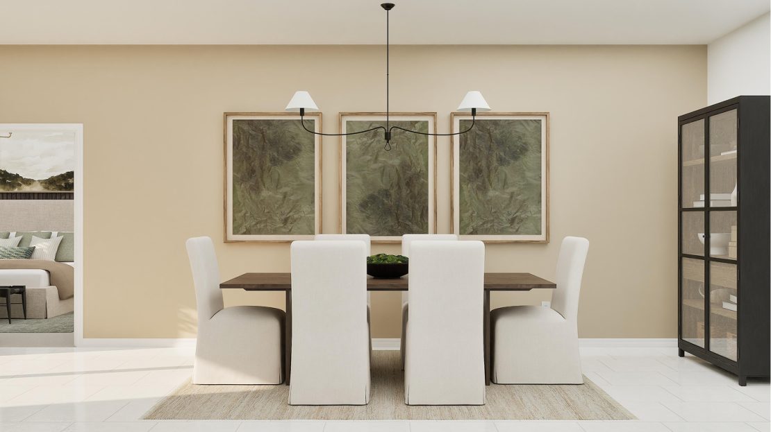 This new single-story home optimizes space and prioritizes ease of living. At the heart is an open-concept design which includes the modern kitchen with a center island, an intimate dining area and a spacious family room with a covered porch. Nearby is the tranquil owner’s suite with a private bathroom and walk-in closet, while two additional bedrooms and a versatile flex space are located down the hall.