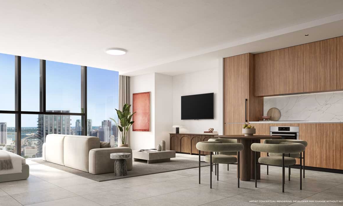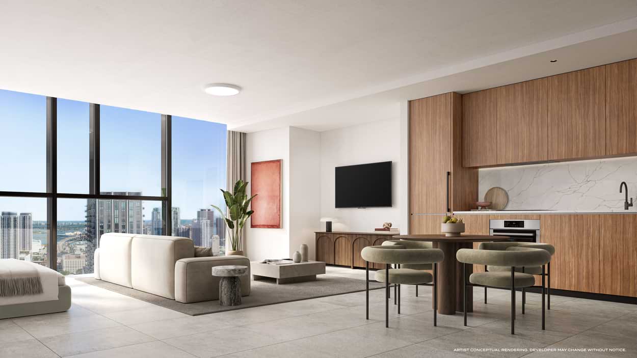 A new luxury residential condominium and office tower is set to become a key feature of the Central Rail Station in Downtown Miami. This modern 39-story building will offer 301 residences, ranging from studios to two-bedroom configurations. It will also be licensed for short-term rentals with Airbnb, offering flexibility to residents. Situated just steps away from the Orlando-bound Brightline train station, this development will offer unparalleled convenience for commuters and residents alike.