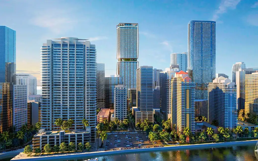 ORA by Casa Tua is a first-of-its-kind luxury high-rise mixed-use development located in the heart of Miami’s bustling Brickell financial district at 1210 Brickell Avenue. This 76-story skyscraper, designed by Arquitectonica with interiors by m2atelier, is developed by Fortune International Group. The tower rises 930 feet and encompasses approximately 1.3 million square feet on a 1.06-acre site. It includes 540 residential units, office and commercial spaces, as well as extensive parking for cars and bike.