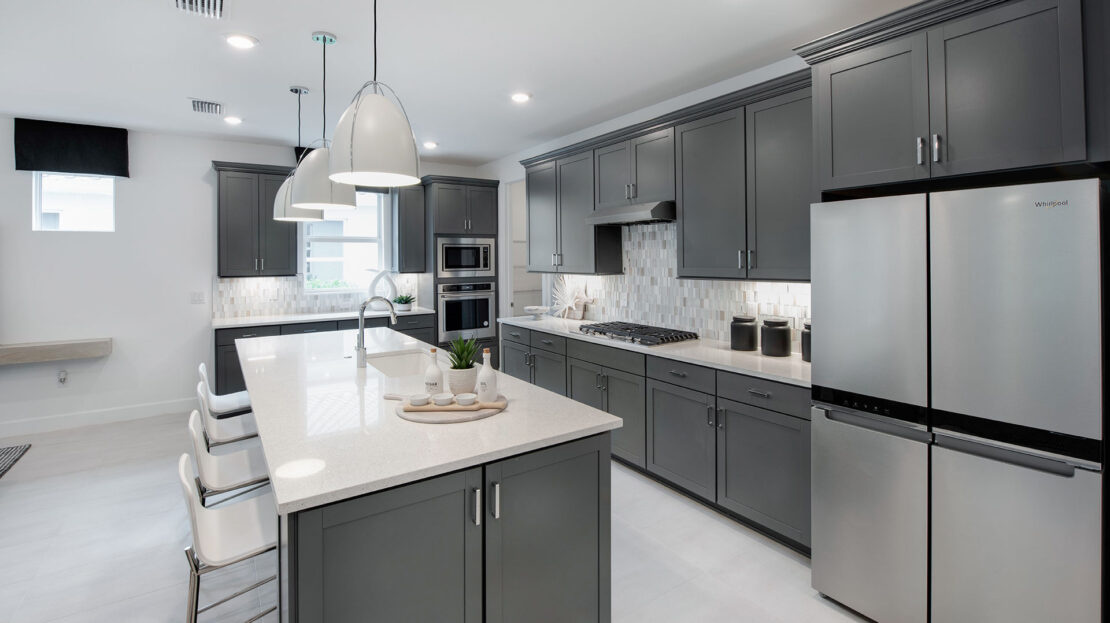 The Palmary is filled with open living areas. The spacious gathering room flows seamlessly into the kitchen, which includes a large pantry and center island, making this space both elegant and functional. A flex room off the foyer could be an office, den, or additional bedroom.