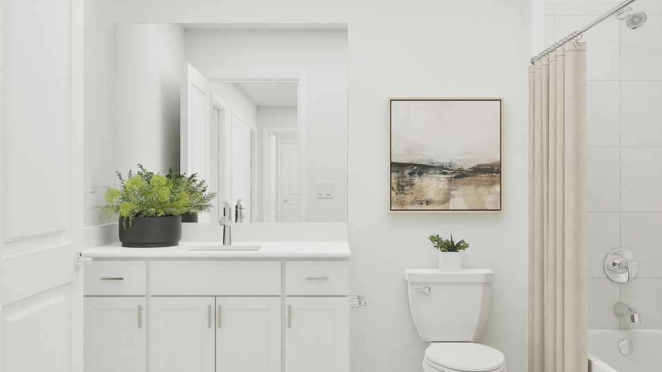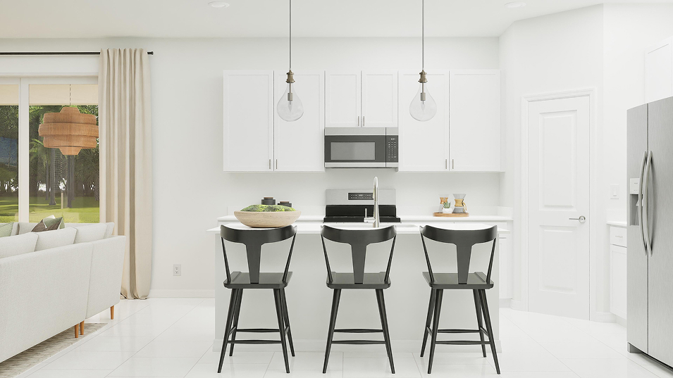 Upon entry into this new two-story home is a flex space ideal for entertaining guests, followed by the spacious open-concept living area with a covered patio to promote indoor-outdoor activities. A first-floor bedroom is well-suited for versatile uses and the remaining three bedrooms occupy the second floor, including the tranquil owner’s suite with a private bathroom. A two-car garage completes the home.