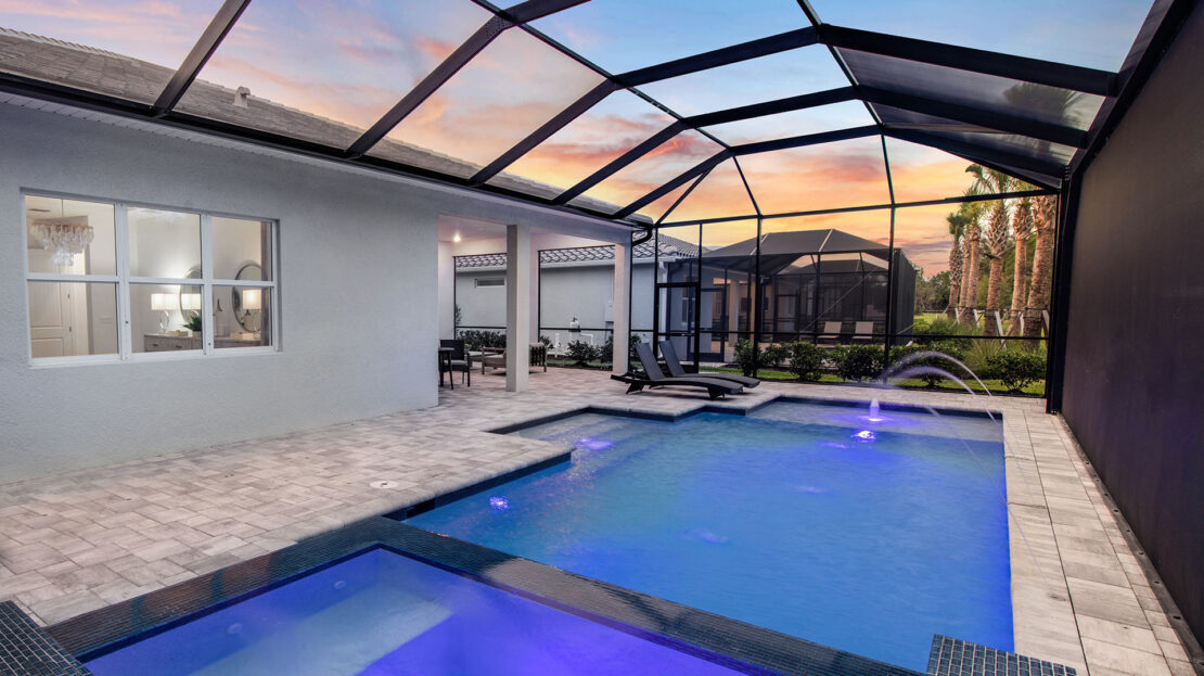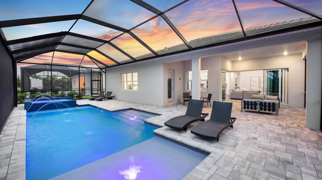 The Renown is known for its entertaining spaces. Enjoy the covered lanai and pool options. Inside, the home’s interior boasts clean lines and open spaces. Elegant and durable designer finished and plenty of natural light add style to the space.