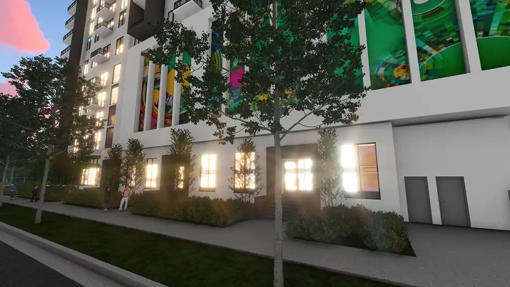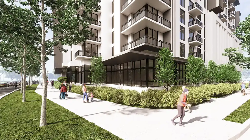 River District 14 offers a true turnkey experience with beautifully designed studios, one-bedroom, two-bedroom, and walk-up condominium residences. Each residence comes with a parking space and is move-in ready, with optional furniture packages available. The residences feature gourmet kitchens with custom cabinetry, stainless steel appliances, fully built-out closets, rain showers in primary bathrooms, and contemporary lighting packages. Additionally, residences boast approximately 9-foot ceilings, stackable washers and dryers, pre-wired high-speed communication and data connections, and smart access with keyless entry.