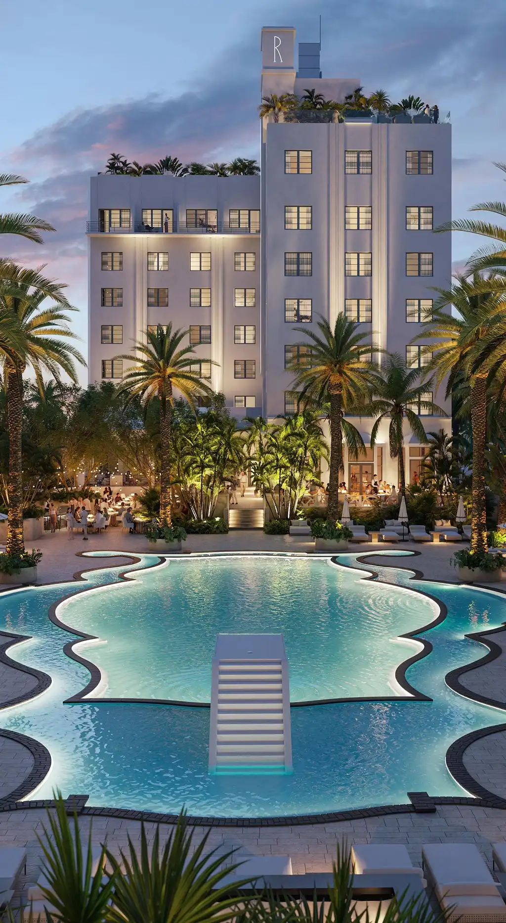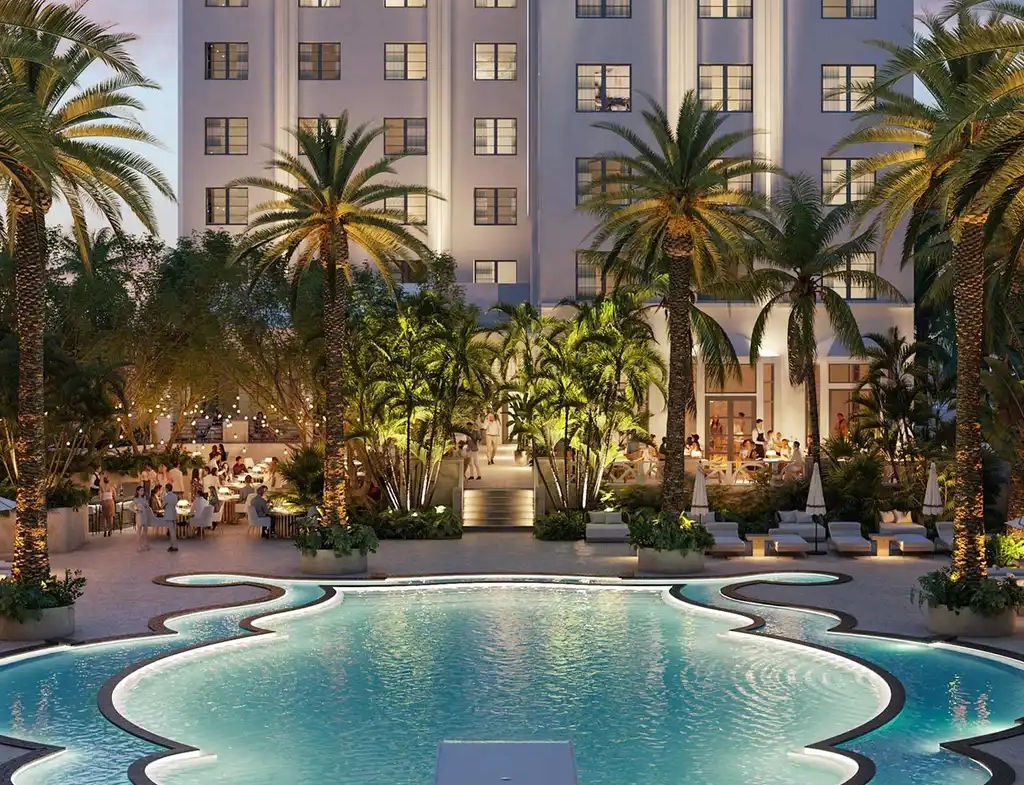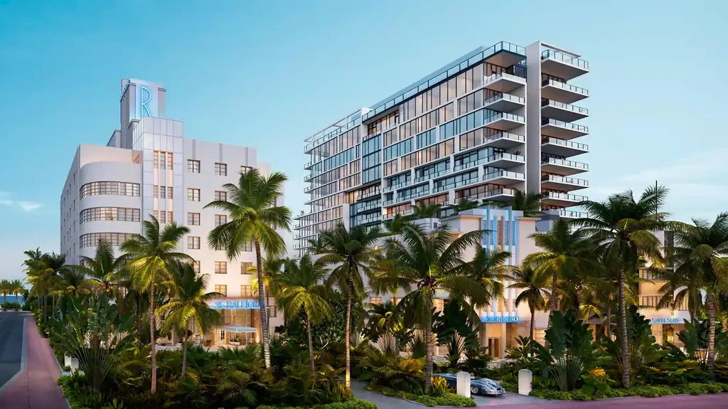 Each building’s historic Art Deco façade will be restored and integrated into the property, offering a nod to Miami’s rich architectural heritage while providing the comfort and sophistication of modern luxury living. The meticulous restoration, in collaboration with the Miami Beach Historic Preservation Board, highlights Miami’s most iconic swimming pool and reimagines Raleigh’s famed gathering spots for a new era.