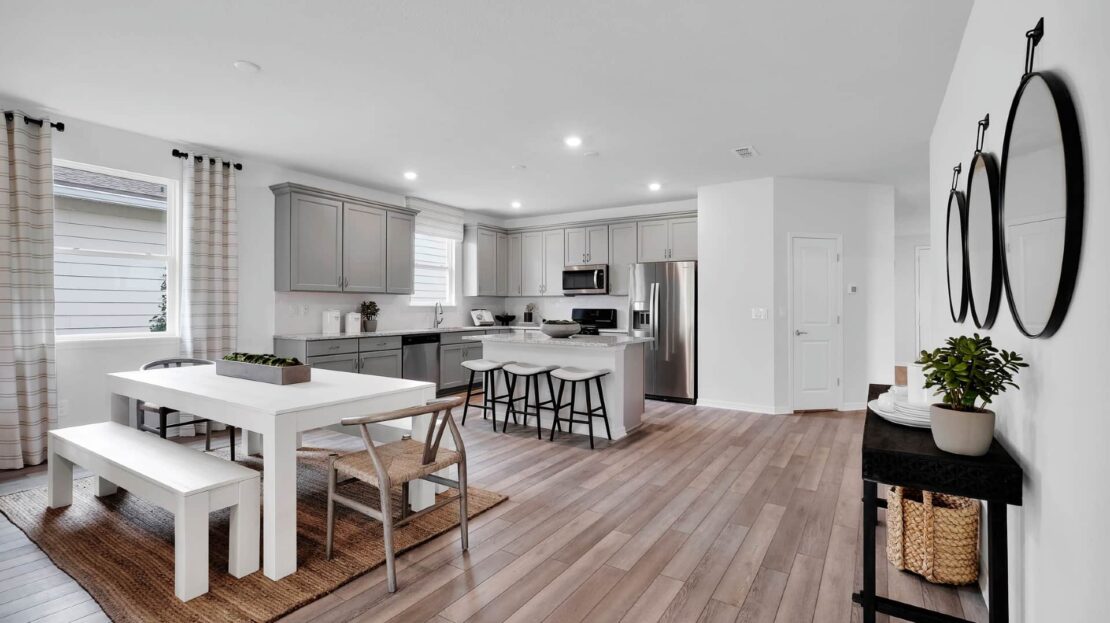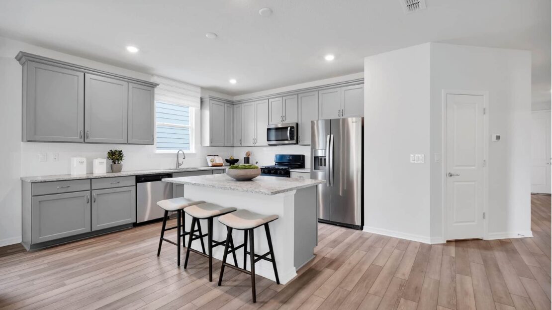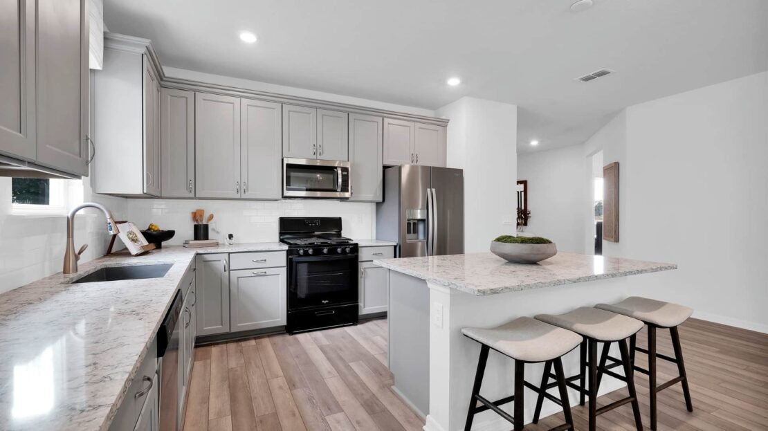 The Spruce is filled with natural light and open living areas. The spacious gathering room flows seamlessly into the kitchen, which boasts stylish Whirlpool® appliances making this space both elegant and functional. A flex room off the foyer could be an office or den.