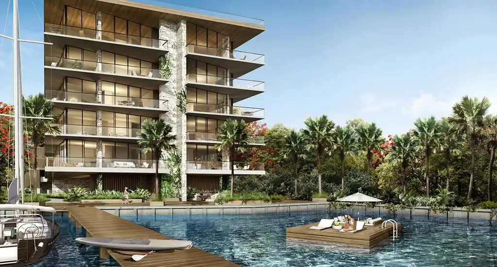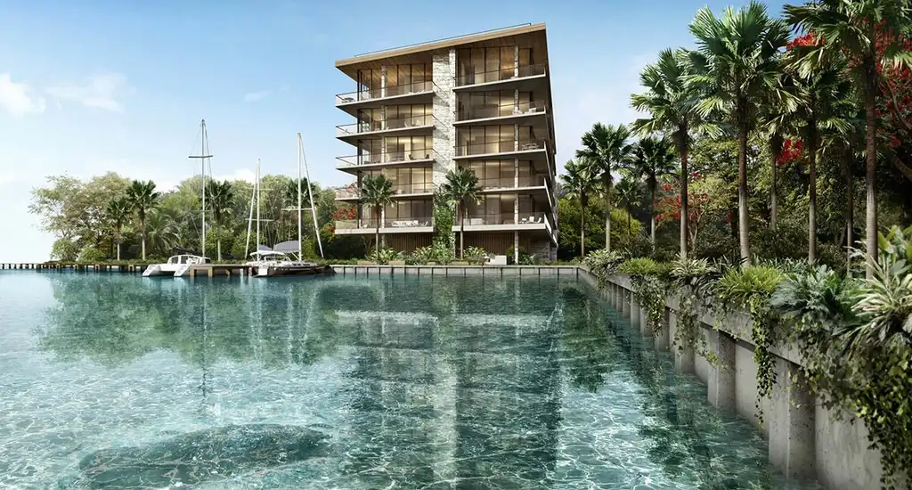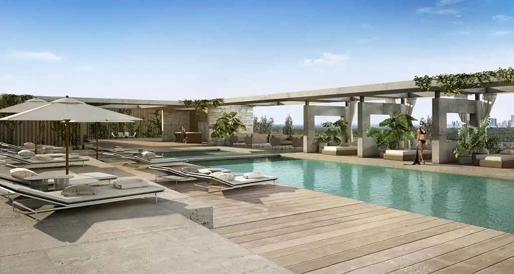 Roof decks are thoughtfully designed to offer unobstructed water views and enhance idle days under the sun with swimming pools and cabanas, and quiet afternoons under the shade of tropical landscaped gardens. Spectacular residence layouts feature private outdoor showers, lanais, expansive chef kitchens, wet bars, spa inspired bathrooms and spacious living areas with tranquil water views and lush neighborhood vistas.