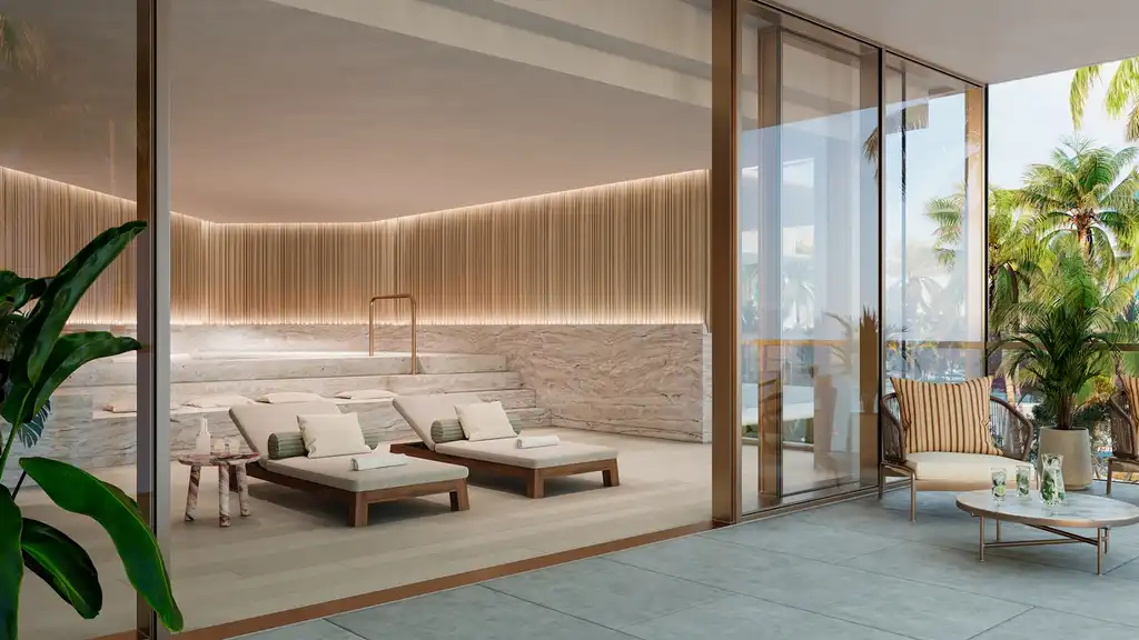 The Perigon Miami Beach also features a bespoke wine room, private salon for personalized beauty services, screening room, imaginative children’s playroom, intimate garden and mediation lounge, and bicycle storage.