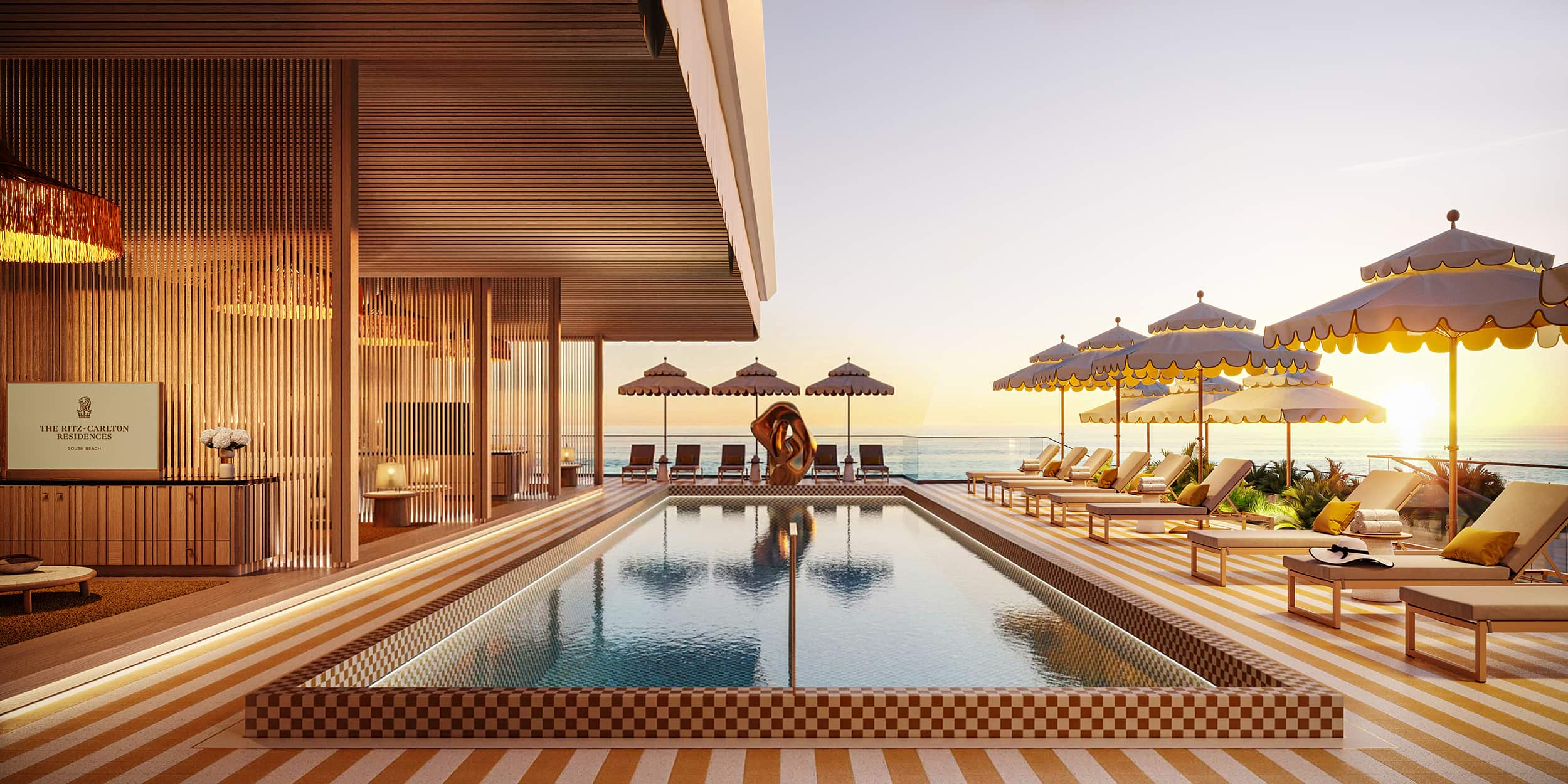The Ritz-Carlton Residences South Beach, situated in the vibrant heart of Miami Beach, epitomizes a unique blend of historical elegance and modern luxury. This prestigious development features a 15-story tower behind the meticulously restored art deco masterpiece, The Sagamore Hotel. Crafted by Sobe Sky Development with architectural design by Kobi Karp and interiors by Studio Munge, it honors Miami Beach’s rich history while embracing contemporary sophistication.