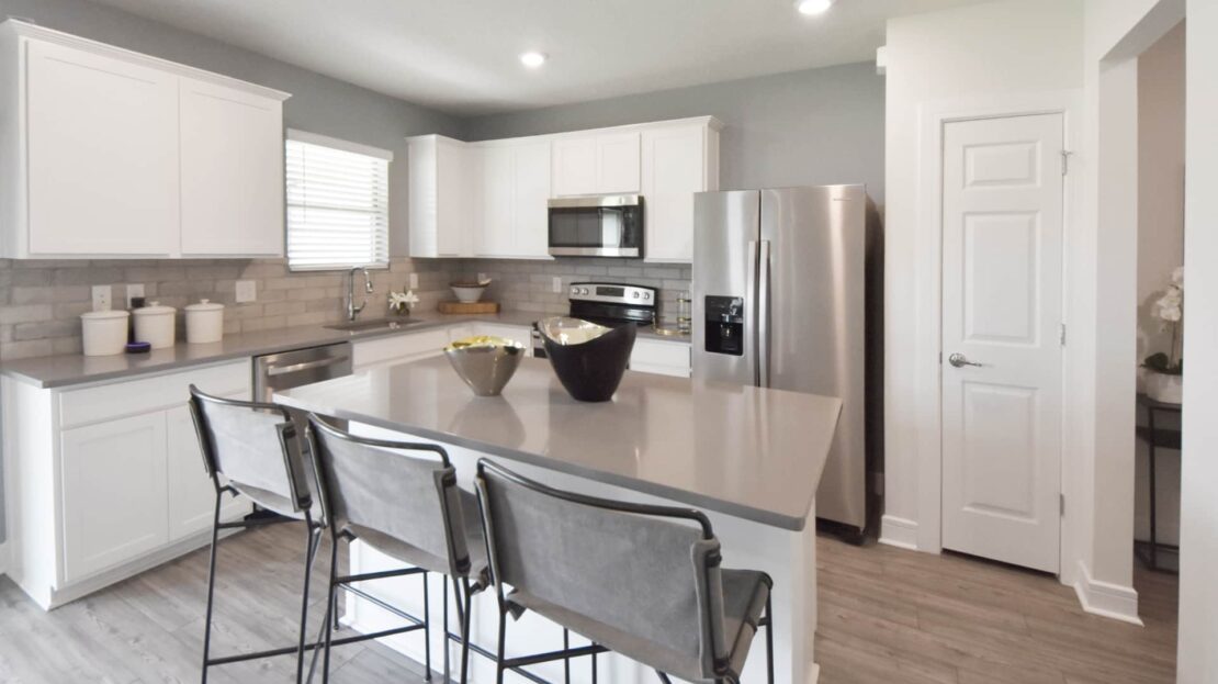 The first floor of the Thompson features open living spaces and a powder bath, convenient for when entertaining guests. Secondary bedrooms are located on the second floor along with a secondary bathroom and loft. Retreat up to the second-floor owner’s suite, complete with a large walk-in closet and private bath.