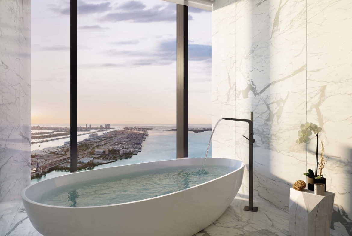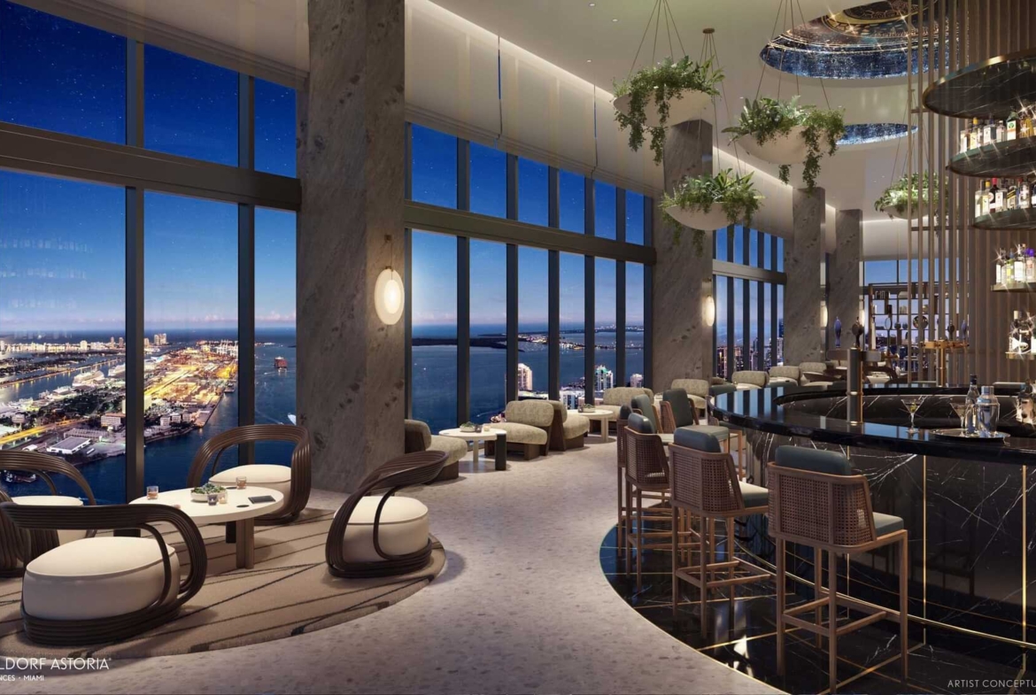 Waldorf Astoria Residences Miami offers an exclusive lifestyle experience within a legacy brand. It is the first 100-story tower Miami (1049 feet tall, tallest residential tower South of New York). The building features a signature spa, fitness center, concierge services, private pool deck, and access to hotel services. The residences include fully finished and furnished suites, private residences with award-winning interior design, custom kitchens and bathrooms, and smart-home technology. Residents can enjoy a luxurious and sophisticated living experience in a prime location in Miami. Waldorf Astoria Residences Miami, with its limitless views, extraordinary architecture and timeless brand,will usher in a new era for generations to come.