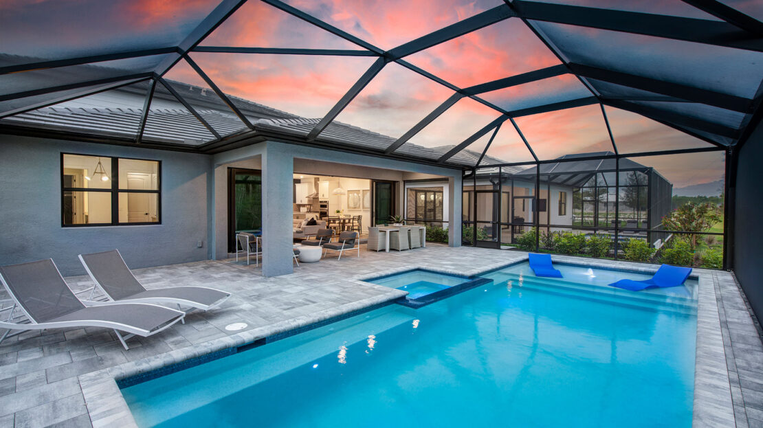 Villa house, TerraWalk at Babcock Ranch is a must-see. The roomy Whitestone model, which starts at $523990, has 2894 of living space, 4-5 bedrooms, 2.5-4 bathrooms, and a 2 car garage.